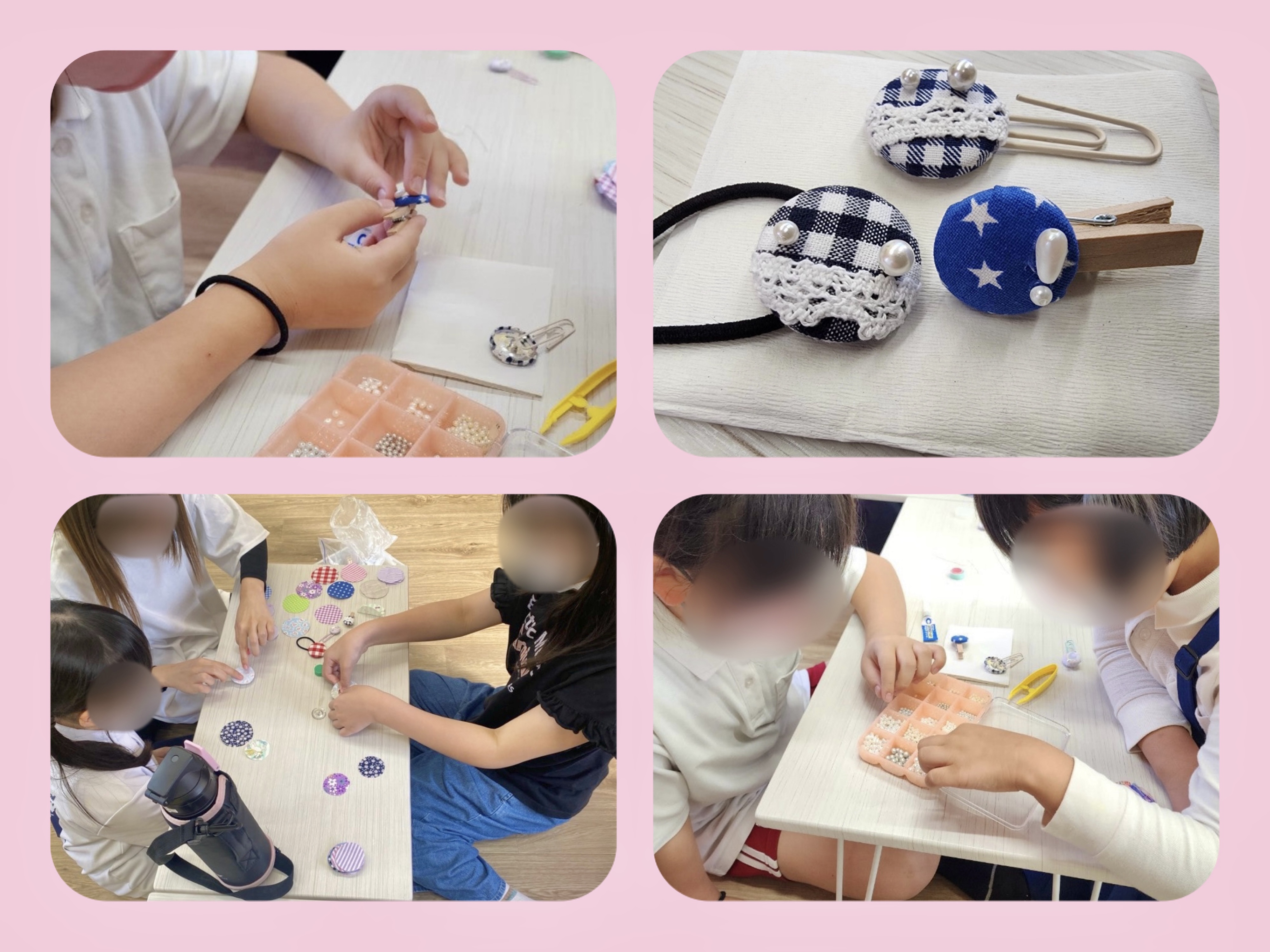 完成したヘアゴムやクリップは、早速身につけている子もいたり