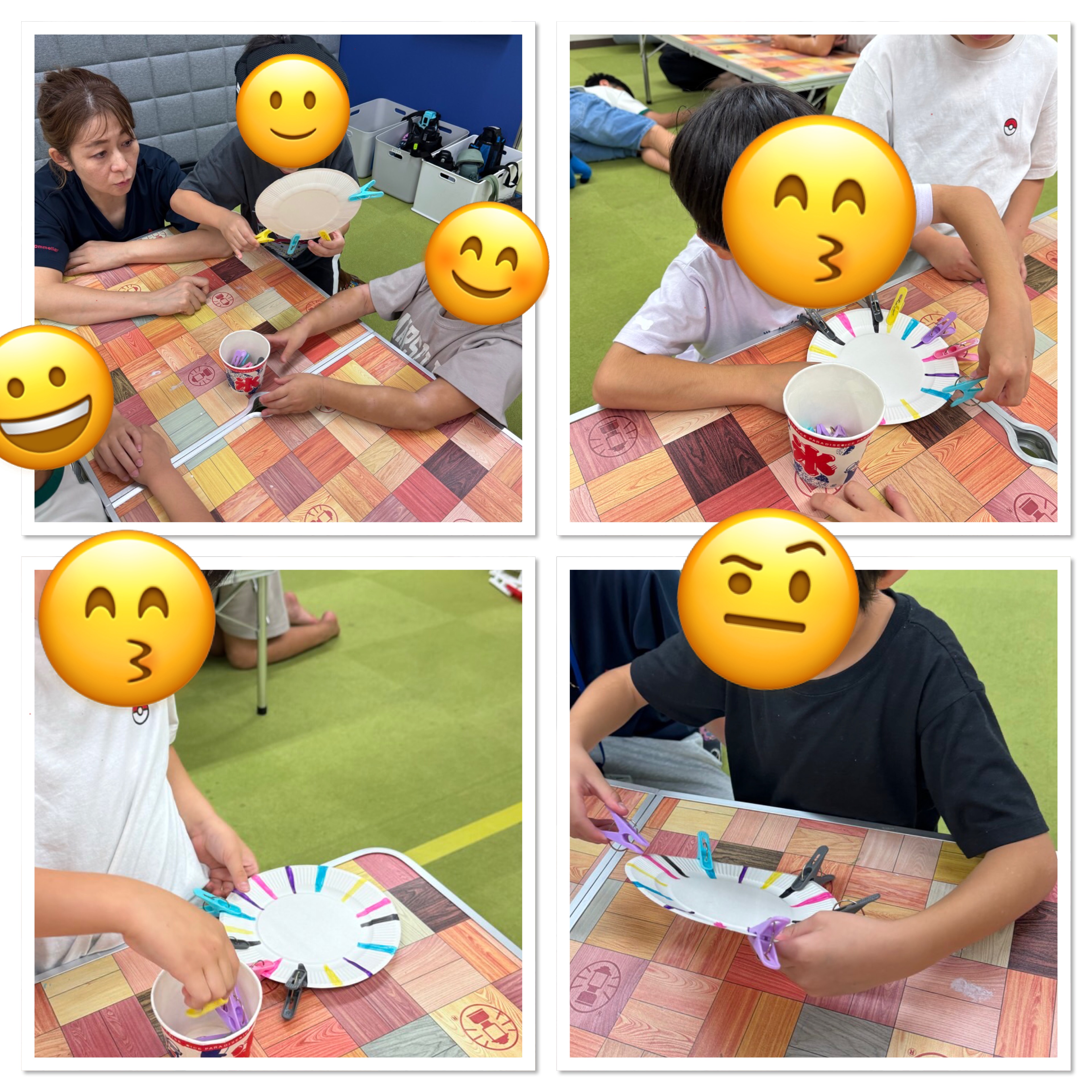 紙皿の淵にデコっているのは😁洗濯バサミです