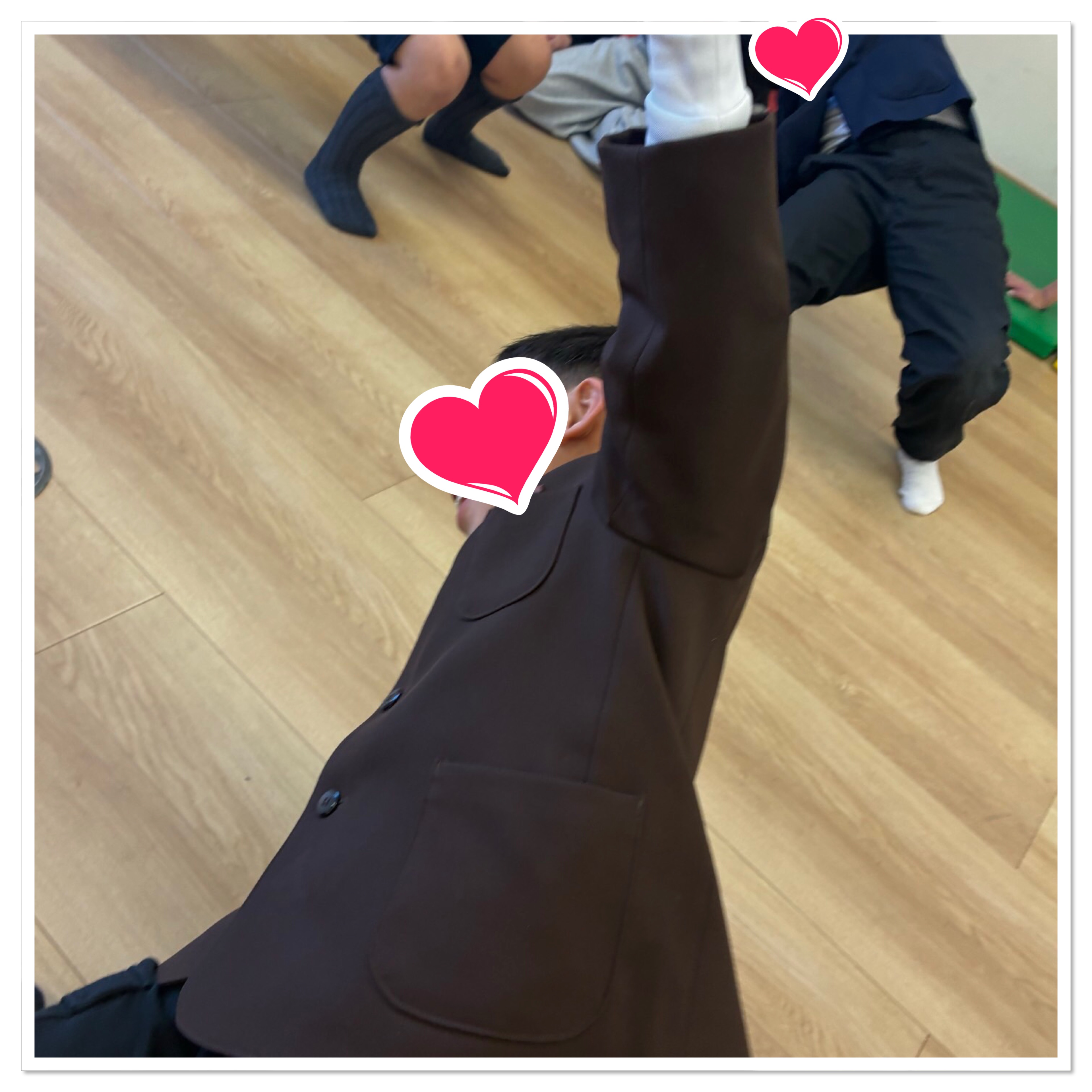 腕立てポーズから手は着いたまま左右交互にジャンプしたり、円状にグルグル回る練習もしました。この練習にはみんなテンションを上げて楽しんで取り組んでくれました✨